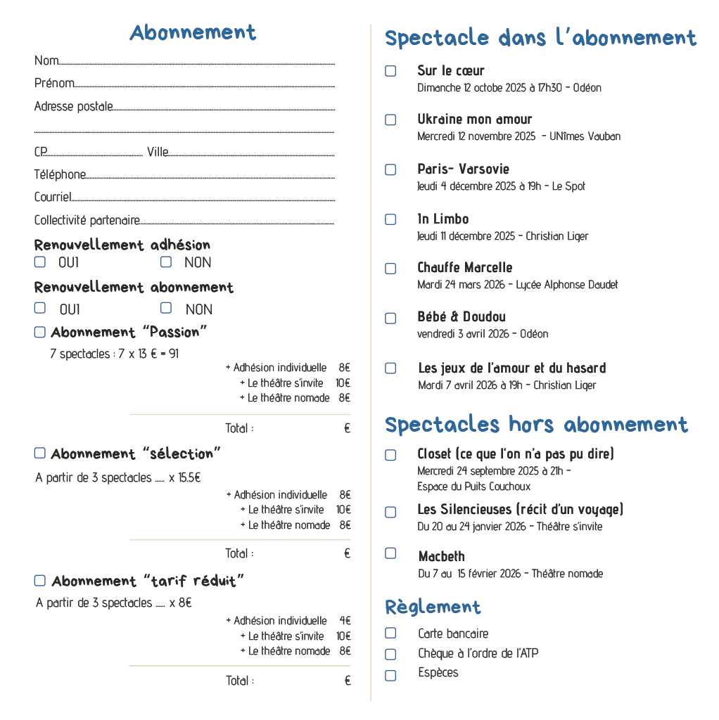 LES SPECTACLES CRÉÉS et DIFFUSÉS avec le soutien de la FATP