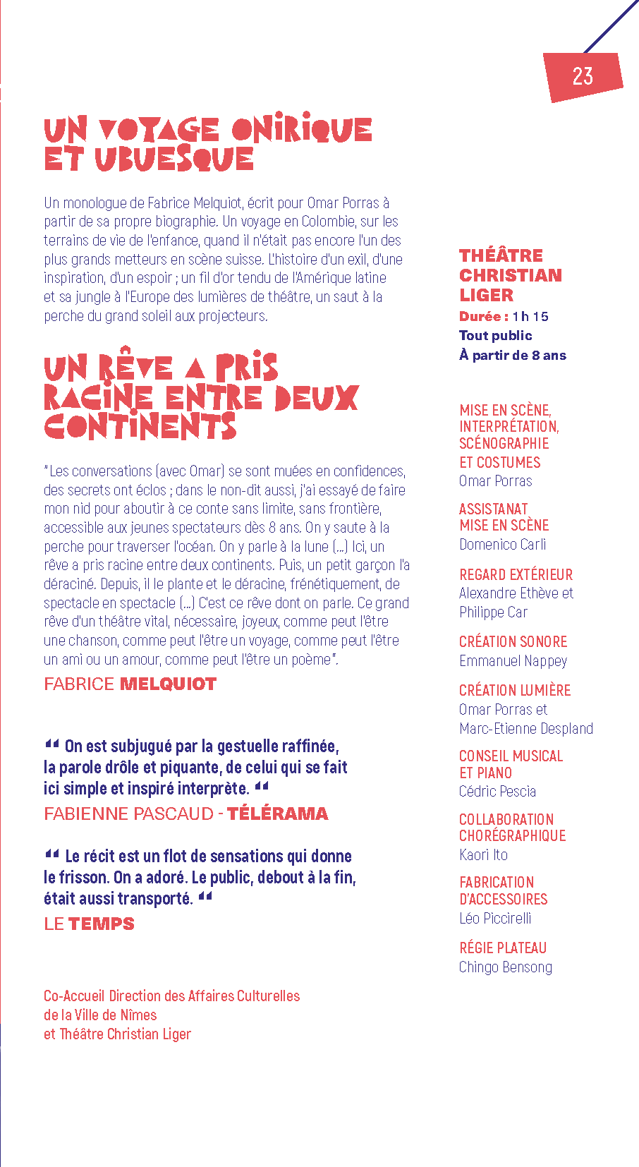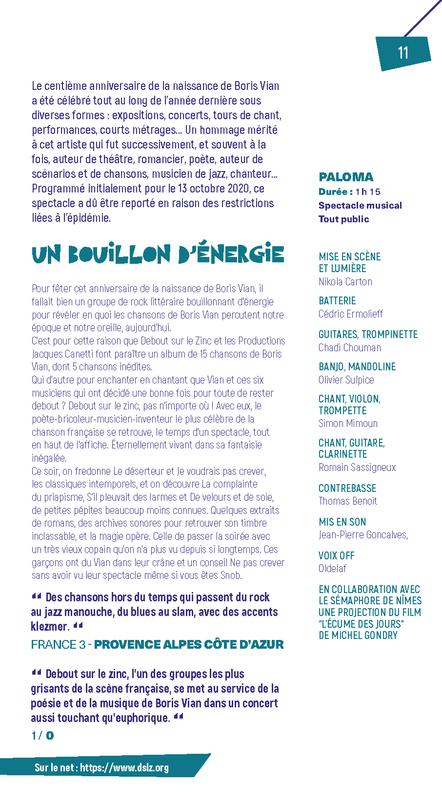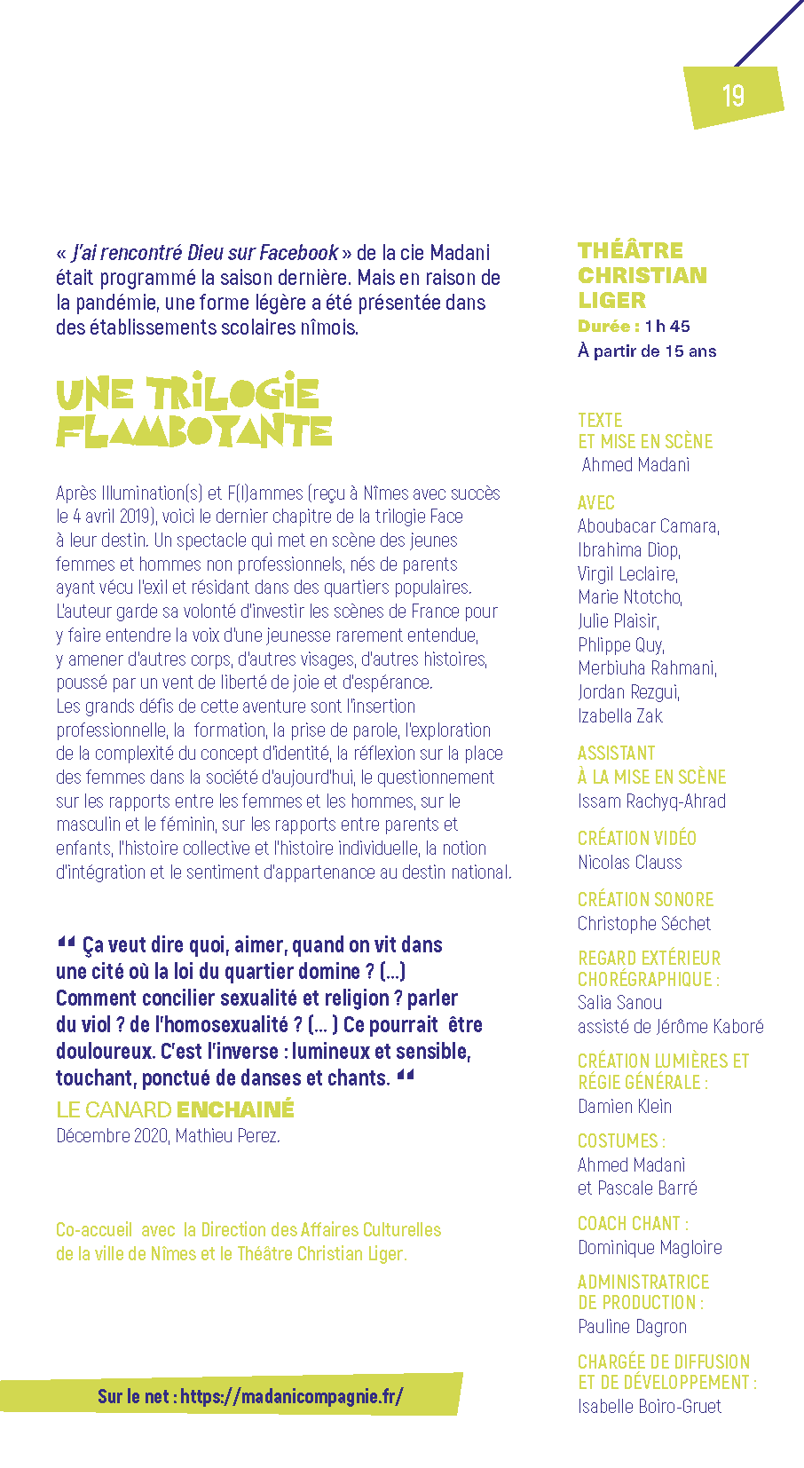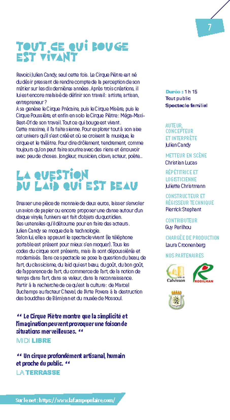 LES SPECTACLES CRÉÉS et DIFFUSÉS avec le soutien de la FATP
